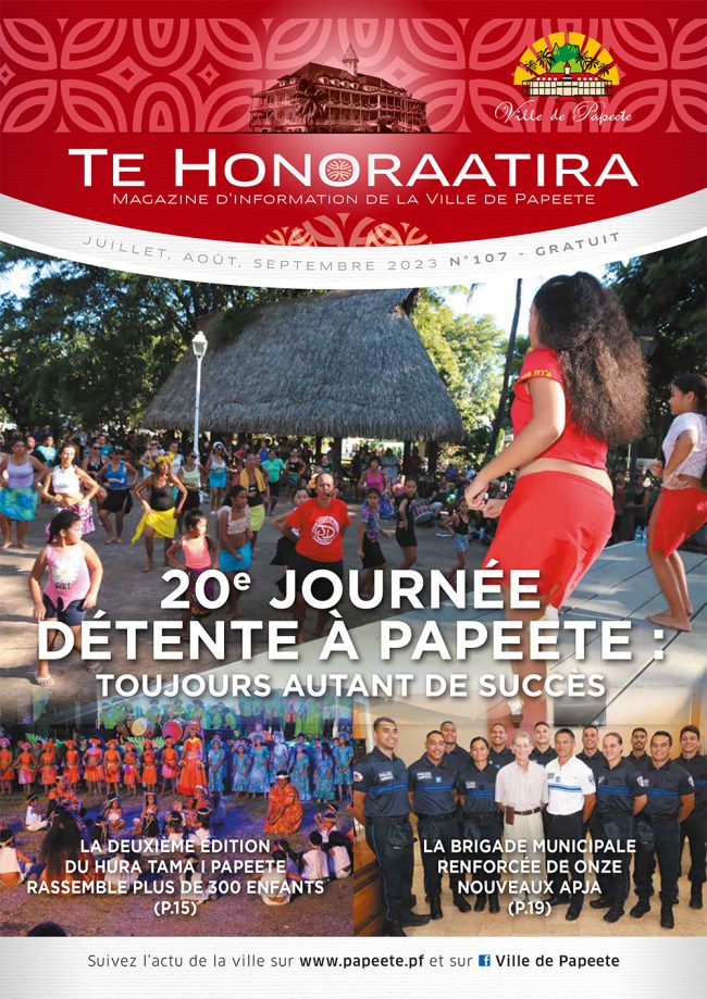 A la une : 20e journée détente à Papeete : toujours autant de succès – La deuxième édition du Hura Tama i Papeete rassemble plus de 300 enfants – La brigade municipale renforcée de onze nouveaux APJA – Un site internet plus moderne et intuitif pour Papeete – Papeete célèbre la Journée mondiale du tourisme…