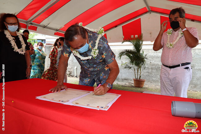 La cérémonie de pose de première pierre de la future école maternelle Tama-nui avait lieu le lundi 16 novembre 2020 à Paofai, en présence de Tavana Michel Buillard, d’Édouard Fritch, président de la Polynésie française, de Christelle Lehartel, ministre de l’Éducation, de la Modernisation de l’Administration et du Numérique, de Corinne Grasset, inspectrice de l’Éducation…