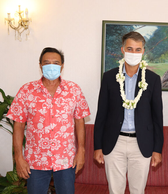 Tavana Michel Buillard a reçu la visite de Cédric Bouet, nouveau directeur de cabinet du Haut-Commissaire. Précédemment sous-préfet de Nogent-le-Rotrou, M. Bouet remplace Christophe Deschamps, depuis le mois d’octobre 2020. Tavana était accompagné pour l’occasion par Rémy Brillant, directeur général des services.