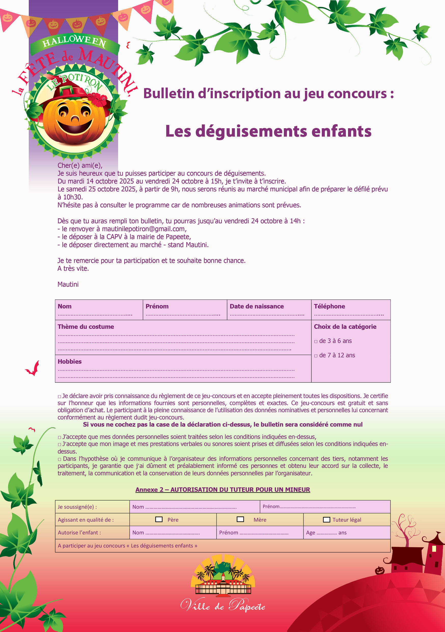 Pour cette édition, il vous donne rendez-vous au Marché de Papeete Inscriptions aux « Concours de déguisements » dès à présent ou au