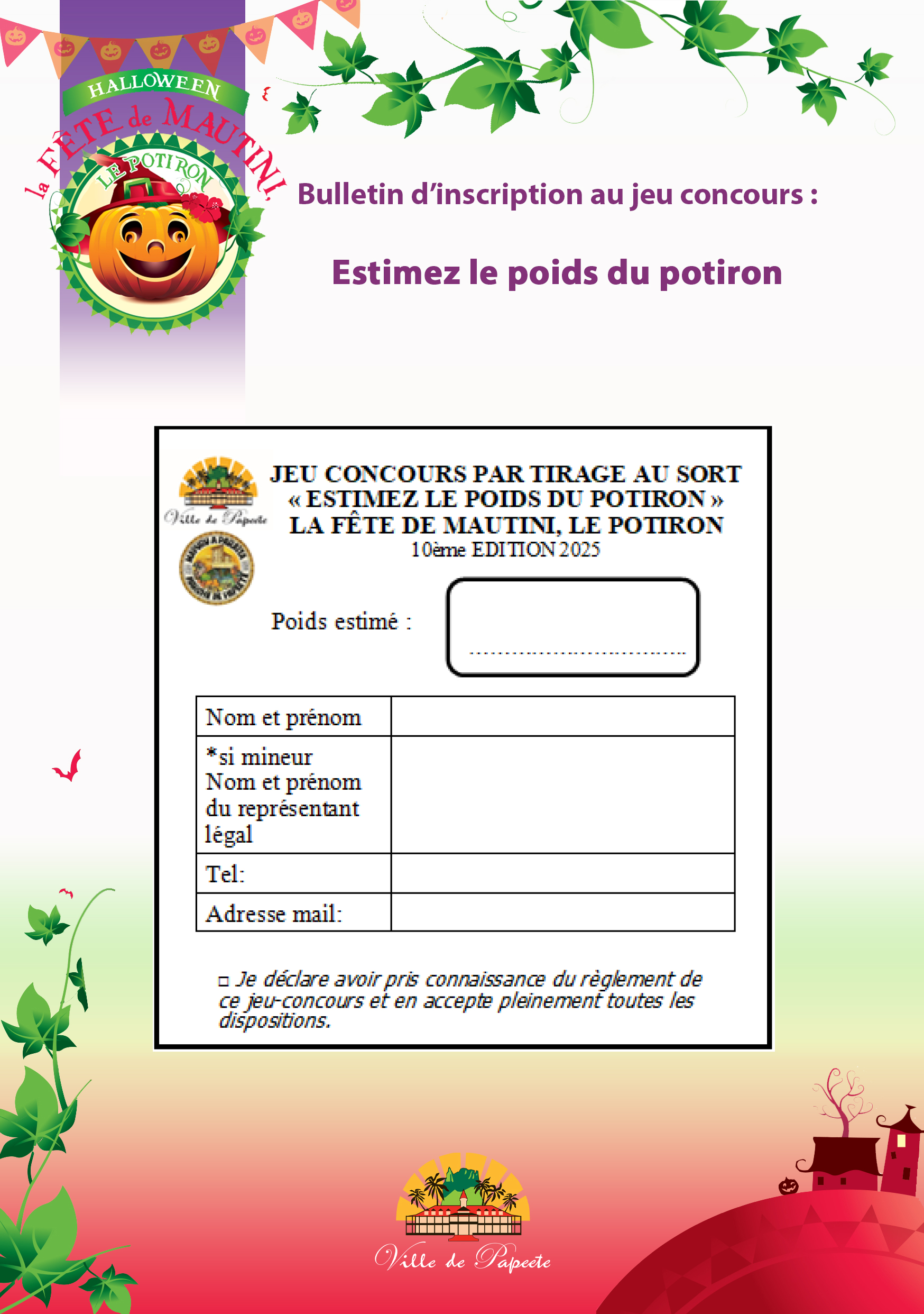 « Concours du potiron sculpté » et/ou au « Jeu Estimez le poids du potiron »